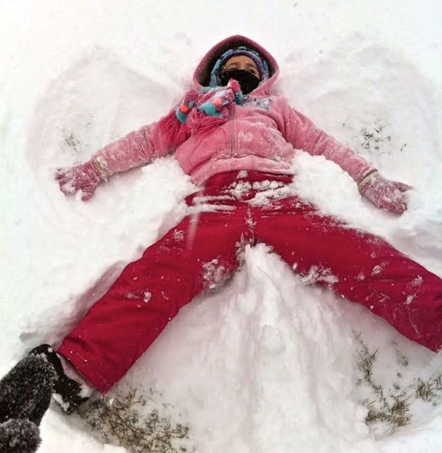 Kendall Melton enjoying the snow! Snow Angel fun! - AMY MELTON