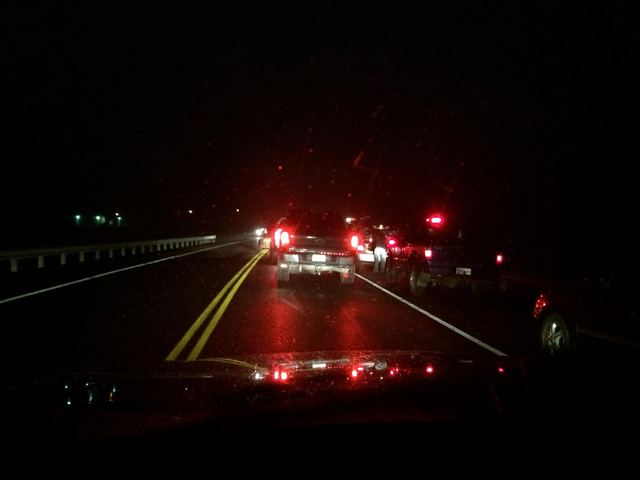 2015-02-09 - Liberty, KY - Photo by Jeff Buis. A head on collision occurred at the Veterans Bridge on W KY 70, Liberty, KY, at around 6pmCT/7pmET, tonight, Monday, February 9, 2015, forcing the road's closure. At least one victim was transported by ambulance to Casey County Hospital, Liberty, KY. - JEFF BUIS