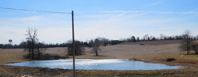 2015-02-05 - Pelham Branch Road at Adair Veterans Memorial Bypass, Columbia, KY - Photo by Ed Waggener. The Cundiff/Sapp Lake along Pelham Branch Road, just north of the Columbia City Limits, glistened like jewels in the noon day sun of Wed 4 Feb 2015. The scene was reminiscent of one of the late Dr. Oris Aaron's favoirite books, Russell Conwell's "Acres of Diamonds," the story of a man who sold his land and traveled the world seeking diamonds and finally see a glistening oceans and cast himself into it; and readers learn that the land he sold was home to one of the largest diamond minds ever. Lesson: There are fortunes to be made right where you are.. And it was reminiscent of a scene on I-30, travelling west, when Lake Ray Hubbard glistens as almost no other place with the same effect, magnified. The water tower in the left of the photo is on Page Street, near the Adair County School District campus.
