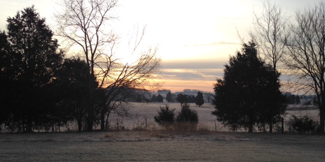 2015-02-06 - Trinity United Methodist Church, 2418 Campbellsville Road, Columbia, KY - Photo by Linda Waggener, CM iPhone photo. It's a brisk 15 degrees F. but compensation aplenty with this sunrise scene from the campus of Trinity United Methodist Church at around 7:15pmCT. - LINDA WAGGENER, CM