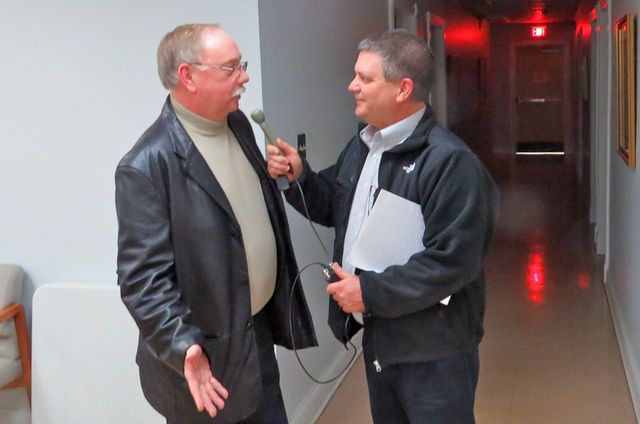 2015-02-03 - City Hall hallway, 116 Campbellsville Street, Columbia, KY - Photo by Innocent Bystander, Columbia City Councilman Craig Dean. Larry Smith interviewed Mayor Curtis Hardwick after last night's meeting of Columbia City Council for Radio Stations FM 92.7 the WAVE, Columbia/Russell Springs, and FM 99.9, The Big Dawg Campbellsville. The interviews were scheduled to be aired throughout the day on the two stations during regularly scheduled top of the air local news updates. Smith is Operations Manager for Shorelines Communications and senior news anchor for the two stations. - EW