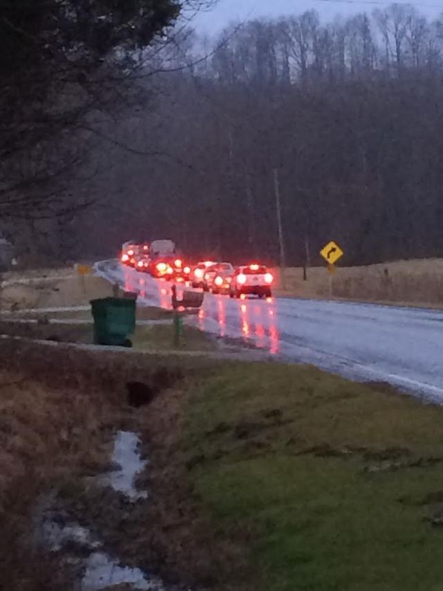 2015-01-29 - Bell Hill, KY 70, Casey County, KY - Photo by Jeff Buis. Two cars involved in these ice related accidents on Bell Hill on KY 70, between Liberty and KY 70 Jct with KY 206. One victim with entrapment in vehicle on its side along the yellow line. (Received at 6:32amCT/7:32amET, Thursday, January 29, 2015. - Jeff Buis Paired photo, Casey Ice II: Casey Ice II: US 127 blocked N of Dunnville,Casey Co. KY