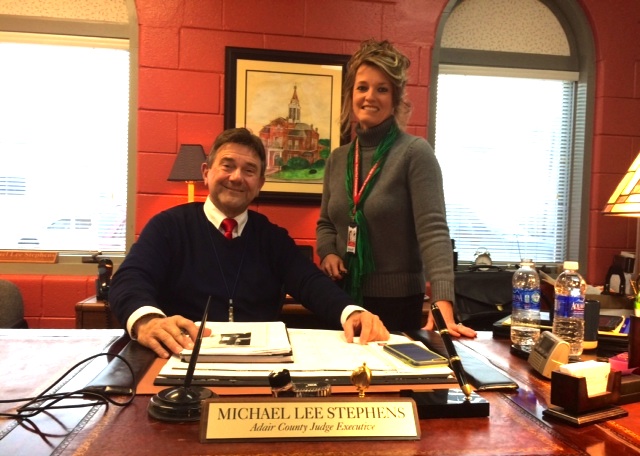 2015-01-20 - Adair Annex, 424 Public Square, Columbia, kY - Photo by Larry Smith, FM 92.7 the WAVE; FM 99.9 The Big Dawg. Judge Mike Stephens is an excited man. He's told me today in an interview for the people to Adair County to get ready for things to pop. He said that the Heartland Parkway is going to be a reality, that the hospital will be saved and the people will be happy with the solution. He said that the transition from Judge Melton's to his administration was probably the best one ever in Kentucky because she has been a great help to him turning over all eight years of records so that he could build on the successes. Interviews will be part of the top-of-the hour local news casts on Wednesday, January 21, 2015 on The WAVE and The Big Dawg.