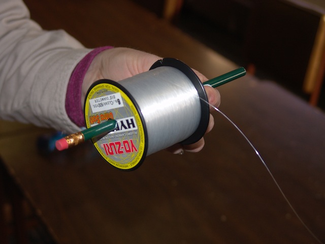 2015-01-08 - Photo by Lee McClellan. When loading a spinning or baitcasting reel with fishing line, make sure the line comes off the top of the spool (as shown), and not the bottom, when employing a helper to complete this task. Improperly spooling fishing line onto a reel creates many problems that greatly diminish the performance of the line.