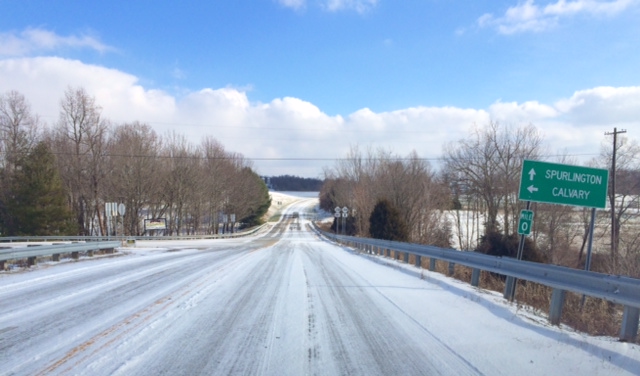 2015-01-07 - Taylor County, KY - Photo by Larry Smith, The Big Dawg, 99.9 Radio. This is the only part of Taylor County, KY where there were treacherous roads because of the snow. In fact, I assisted one young driver who left the roadway not far from here. No injuries and the outcome has been so good so far. Still, Superintendent Cook and Transportation Director Rodney Turpen of the Taylor County School system have announced that parents who live in the Spurlington Road area could check out their children early today. Larry Smith, Operations Manager, Shoreline Communications.