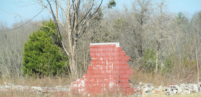 2014-12-25 - ?????, South Central Kentucky - Photo Pulled from CM raw files. YOU WRITE THE CUTLINE.It's a monument to memories. Every cinder block remaining of this once grand gathering place could signify thousands of memories: Of athletic skills learned, of falls & bruises and maybe of fractured bones. For sure, romances and later marriages and families grew from meetings here. Many possibly remember the food served here. The photo from the raw files cropped up because of its Christmasy look: The live cedar Christmas tree, the mistletoe and the standing red cinderblock corner. The winning cutline can be factual or fictional - all one or the other, as in the late Steve Aaron's wisdom on gender preference: Pick one and stick with it.. If factual, a hint: This monument stands a few away from a historic and nomadic little building which once stood at the lowest elevation in its county.