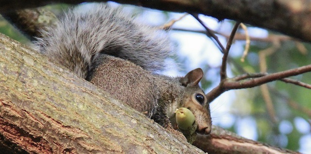 2014-12-23 - Campbellsville, KY - Photo courtesy Campbellsville University Communications. Every now and then a Campbellsville University student photographer captures activities that usually go unnoticed in the bustle of finishing up a semester. This squirrel was busy moving and storing acorns from the huge oak trees on campus in preparation for the winter weeks ahead. - Linda Waggener