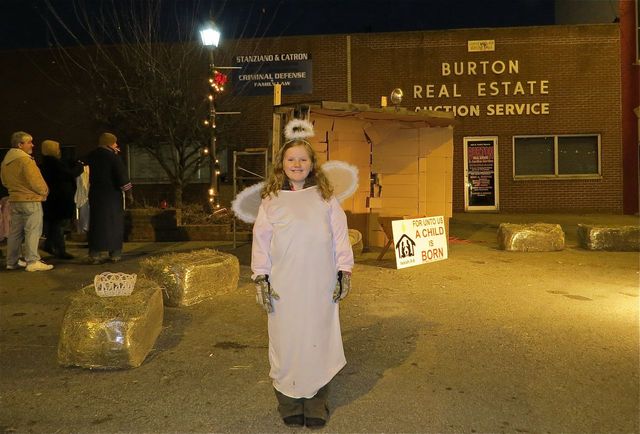Sarah Streeval, portraying an Angel in the Bloomington Chapel Live Nativity Scene was one of the first re-enactors to arrive for final scheduled performances, tonight, Sunday, December 21, from 5pm-8pmCT. The weather is great for the performance, and the Square is beautifully decorated. When the photo was taken there was still plenty of room for parking.