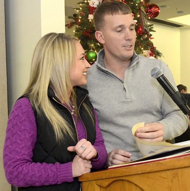 2014-12-20 - Roberta C. Cranmer Dining Center, 430 Helen Flatt Drive, Columbia, kY - Photo by Duane Bonifer, LWC. Reagan Judd and Dakota Meyer conclude the second-annual Community Christmas Dinner, held Friday night, December 19, 2014, at LWC's Roberta D. Cranmer Dining & Conference Center, with a reading of Clement Clarke Moore's poem "A Visit from St. Nicholas." - Duane Bonifer