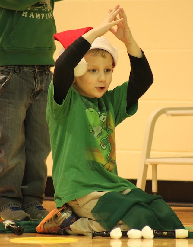 2014-12-19 - ACPC, 158 Col. Casey Drive, Columbia, KY - Photo by Shamarie Claiborne, Adair Co. School District. Hudson Hancock was making the best tree shape possible during Mrs. Keltner's class rendition of O Christmas Tree during their performance at ACPC yesterday. - Shamarie Claiborne