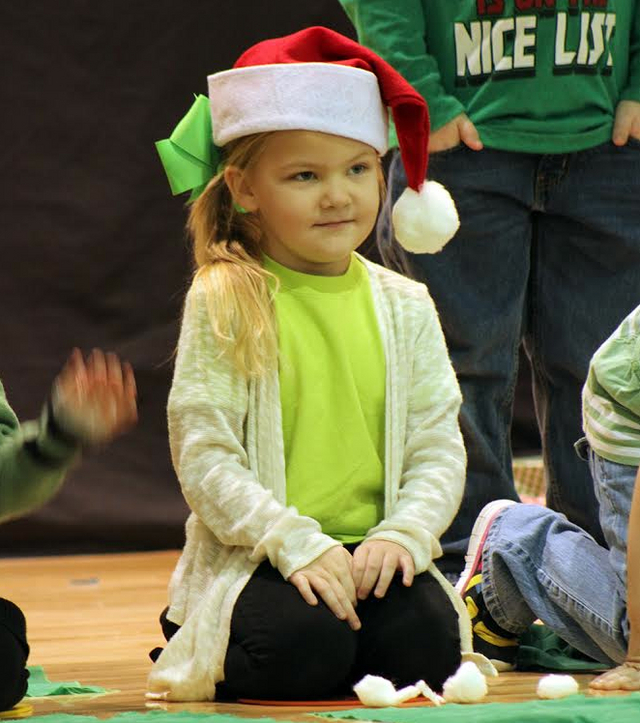 2014-12-19 - ACPC, 158 Col. Casey Drive, Columbia, KY - Photo by Shamarie Claiborne, Adair Co. School District. Abby Maulden waited patiently for her performance to begin yesterday during ACPC's Kindergarten Program Christmas Showstoppers. - Shamarie Claiborne