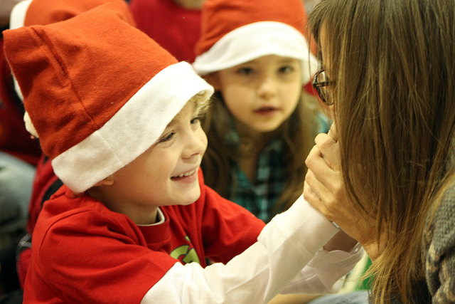 2014-12-18 - ACPC, 158 Col. Casey Drive, Columbia, KY - Photo by Shamarie Claiborne, Adair Co. School District. Jasper Kemp was thrilled when he saw his mother Jennifer arrive just in time to see him perform today in the Kindergarten Program - Christmas Showstoppers at ACPC. It was a 'Mommy I love you' moment - if there ever was one! Shamarie Claiborne