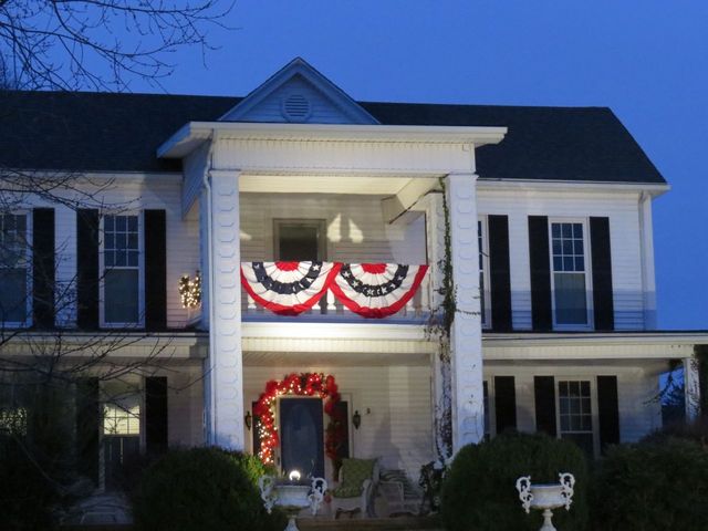 2014-12-13 - Jamestown at Miller Avenue, Columbia, KY - Photo by Linda Waggener, CM. The historic Miller home, now the Eubank home on Jamestown Street, carried both Christmas and patriotic themes in its decorations, matching the Christmas in Columbia parade December 6 which honored Adair County Veterans. Veterans of World War II took the position of Grand Marshall and led the long parade.