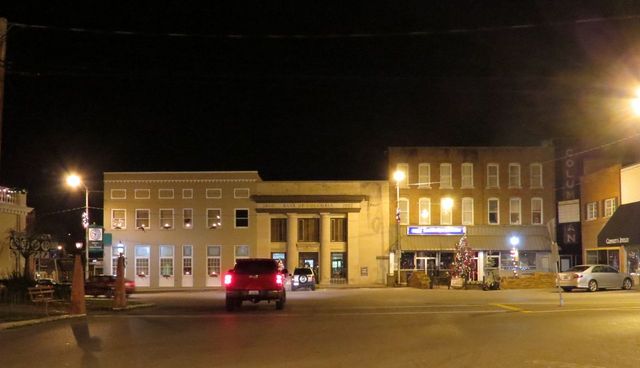 2014-12-12 - Public Square, Columbia, KY - Photo (c) ColumbiaMagazine.com. The Downtown is brighter, with the Christmas tree lights turned on Saturday evening at 6:15pmCT, during Christmas in Columbia. The tree is sponsored by the Columbia Christian Church.