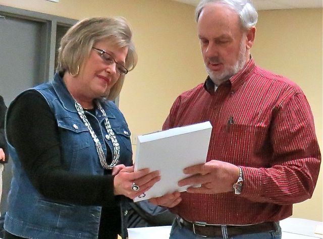 2014-12-12 - Adair Annex, 424 Public Square, Columbia, KY - Photo by Ed Waggener. Adair County Judge Executive Ann Melton was presented a plaque from the Adair Fiscal Court, represented in the presentation by Magistrate Billy Dean Coffey (District 5), for Judge Melton's 38 years of service - the last eight in the Judge Executive's Office - to the people of Adair County. Clicking Readmore accesses the full report of the Fiscal Court Meeting.