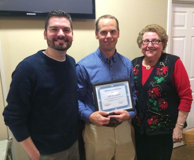 2014-12-10 - 275 Country Club Road, Columbia, KY - Photo by Ellen Zornes. Joel Peterson was given a Certificate of Appreciation for his term of service on the Chamber Board of Directors by outgoing President, Brandon Thompson and Executive Director, Sue Stivers. - Ellen Zornes