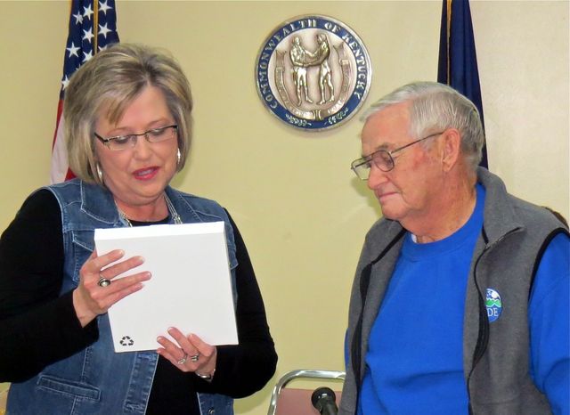 2014-12-10 - 275 Country Club Road, Columbia, KY - Photo by Ed Waggener. Always a favorite, crowd pleasing speaker at Fiscal Court Meetings, Adair County Solid Waste Coordinator A.L. Sinclair, who will leave office before the incoming administration comes in, was recognized for 13 years in his current position with great accomplishments to his credit. Sinclair told the court that at the onset of his career in solid waste, Adair County had 168 roadside dumps. Today, he said, that number is down to three. Click Readmore for detailed report of Adair Fiscal Court 9 Dec 2014 regular meeting