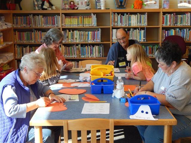 2014-12-08 - 158 Col. Casey Drive, Columbia, KY - Photo by Patty Jones, Principal. The students at Adair County Primary Center were blessed with lots of volunteers over the Halloween season. Pictured are Carolyn Hancock, retired teacher and ACPC grandparent, Judy Bradshaw, a retired teachers and longtime kindergarten teacher, Robert Bryant, ACPC grandparent and newly named "Rocketman" at ACPC, and Shawna Burton, ACPC kindergarten parent. All of these volunteers were busy helping students create "Boo-Grams" for their family members and friends. The event was sponsored by the newly formed Rocket Booster, parent support group at the school. The next meeting of the Rocket Boosters will be Tuesday, December 16, 2014, at 5:30pmCT in the Adair County Elementary School library, 158 Col. Casey Drive, Columbia, KY. We hope to see lots of ACPC supporters there. - Patty Jones, Principal