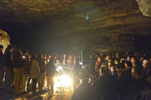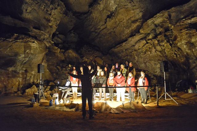 2014-12-08 - Methodist Room, Mammoth Cave, KY - Photo by Duane Bonifer. The Lindsey Wilson Singers rehearse Sunday in the Methodist Church room of Mammoth Cave before performing in the national park’s 35th-annual “Cave Sing” for more than 500 guests. - Duane Bonifer