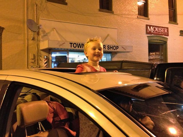 The weather for the parade challenged watchers to bundle up but little Emma Burton, 3, outsmarted the weather by remaining in the car and waving out of the rooftop. She was there with family, her parents Gola and Marshall Burton. - Linda Waggener, CM