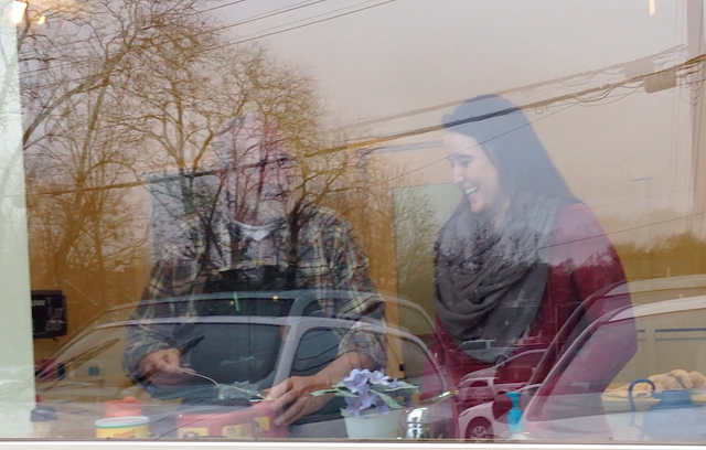 2014-12-07 - 201 Greensburg ST, Columbia, KY - Photo by Linda Waggener, CM . The Rotary breakfast as well as the courthouse Chili, may go down in history as the keynote meals for Christmas in Columbia future. This moment looking in the picture window of the Baptist Church from the back parking lot, found Head Sausage Chef Gerald Holt and his daughter, Natasha hard at work. The breakfast was fantastic. Dr. Max Downey has found his calling scrambling eggs. Didn't get the name of the biscuit baker, but they were great, true to the tradition of the man the breakfast honors, the late Edgar Troutman. And J.D. Zornes gravy - the best. Even non-breakfast eater and Mayor-elect Curtis Hardwick gave highest praise to the meal. Haven't gotten a final report, but we're told it may have been a record crowd. - EW