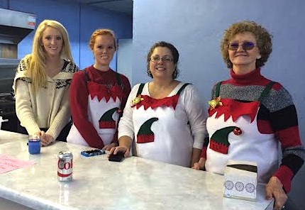 2014-12-06 - 501 Burkesville Street, Columbia, KY - Photo (c) ColumbiaMagazine.com. Emily Cross, Sarah Jessie, Debbie Jessie, and Judy Hopper are handling the concessions sales for the Christmas in Columbia vendors at the Masonic Lodge, 501 Burkesville Street. After Ye Olde Christmas Shoppe was at capacity, new venues cropped up for Saturday, December 6, 2014, 9am-3pmCT. This one, at the Masonic Lodge has June Bennett with Pampered Chef; Jennifer Carter, Mary Kay; Debbie Jessie, Crafts & Creations by Deb; and Emily Cross, Chloe & Isabel Jewelry. The entire hall is filled with merchandise, with food handled by the concession stand. Other locations are at Mackie Jo's, 100 Public Square; and the Adair Annex, 424 Public Square.