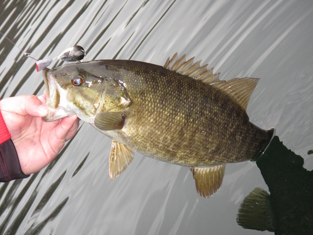 2014-12-05 - Dale Hollow Lake - Photo by Lee McClellan. This smallmouth bass fell for a tailspinner last Monday in Dale Hollow Lake. Tailspinners are one of the most effective winter lures for black bass in reservoirs. They also fool walleye and sauger below locks and dams during the cold months.