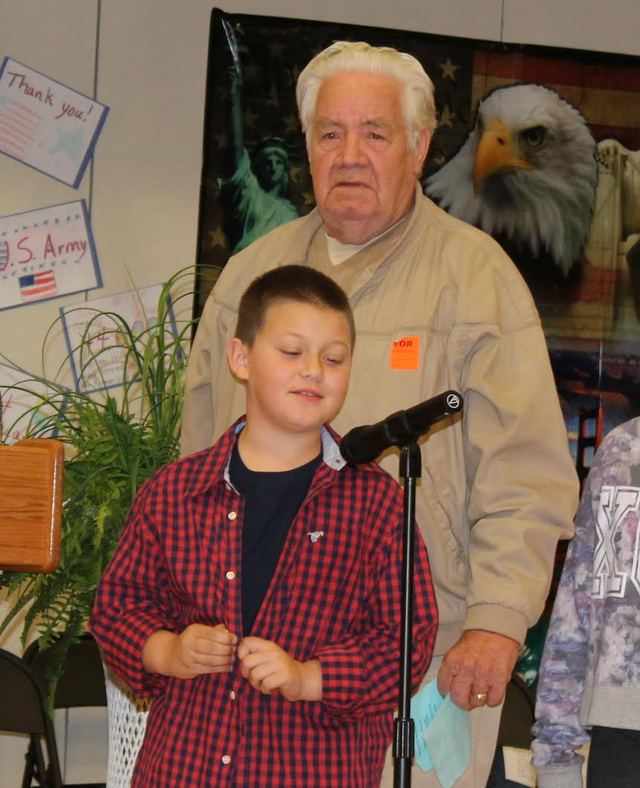 2014-12-05 - ACES, 870 Indian DR, Columbia, KY - Photo by Alice Curry. ACES 4th grade student, Garrett Tucker invited his neighbor, Travis Hatfield to the Adair County Elementary School Veterans Day Program. Mr. Hatfield served in the U.S. Army and fought in the Korean War. - Alice Curry