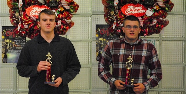 2014-12-04 - Columbia, KY - Photo by Cathy Luttrell. Dylan Conn and Austin Horton were awarded Coaches Awards at the ACHS Football Banquet held Monday night at Roberta D. Cranmer Dining Center.