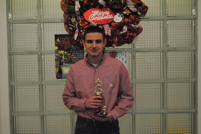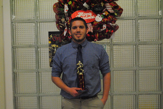 2014-12-04 - Columbia, KY - Photo by Cathy Luttrell. Logan Coomer was awarded Varsity Most Improved Offensive Lineman at the ACHS Football Banquet held Monday night at Roberta D. Cranmer Dining Center.