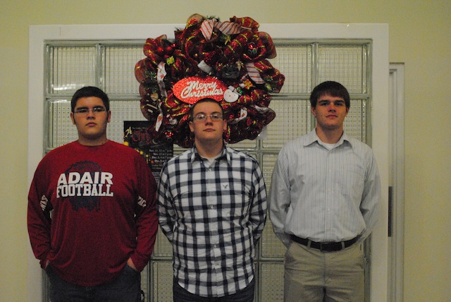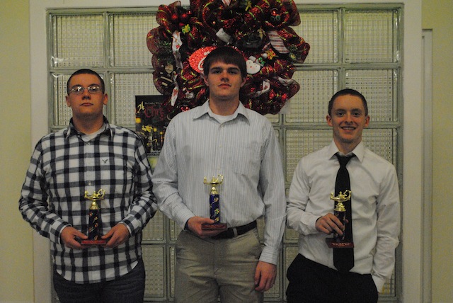 2014-12-04 - Columbia, KY - Photo by Cathy Luttrell. Anthony Gardner, Landon Herren and Jeremy Luttrell received Academic All-State Award for having a GPA greater than 3.75 at the ACHS Football Banquet held Monday night at Roberta D. Cranmer Dining Center.