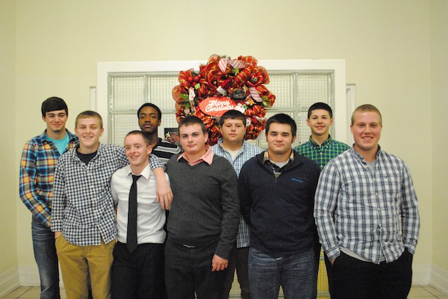 2014-12-04 - Columbia, KY - Photo by Cathy Luttrell. The above players received Honorable Mention for Academic All-State at the ACHS Football Banquet held Monday night at Roberta D. Cranmer Dining Center. Front Row: Lonnie Grant, Brandon Burton, Brady Hixson, Jacob Doss, Spencer Claypool. Back Row: Chance Melton, Cameron Lasley, Daniel Grant, Jeremy Wall.
