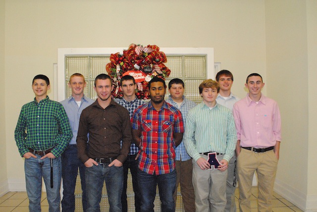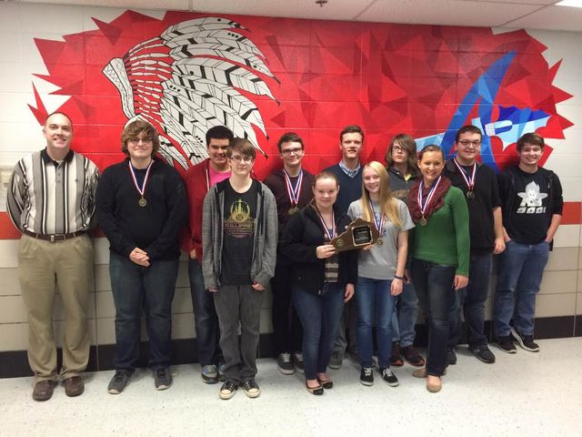 Eli Jackson, Charles Jones, Erwin Ruczienski, Timothy Watson, Courtney Green, Benjamin Hancock, Rebecca Montgomery, Zane Sanders, Brittany Curry, Treyton Grant, Austin Bradshaw all members of the 2014 - 2015 ACHS Academic Team are shown here with their Coach Brett Reliford after winning the Fall League Championship for the 9th consecutive year.