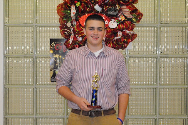 2014-12-02 - Columbia, KY - Photo by Cathy Luttrell. Damon Honaker was awarded Junior Varsity Best Running Back at the ACHS Football Banquet held  Monday night at Roberta D. Cranmer Dining Center. Damon Honaker was also awarded Junior Varsity Most Valuable Player Offense.