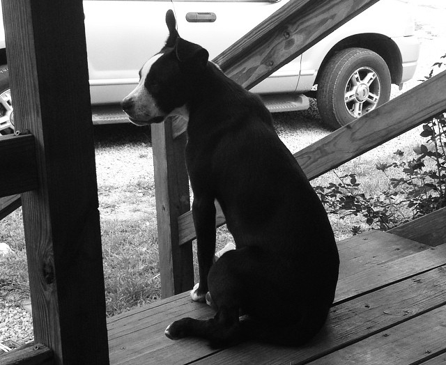 2014-11-27 - Mell Ridge/Keltnertown area - Photo by Corinna Edwards. We have a black and white mastiff pit mix dog that has gone missing in the Mell Ridge / Keltnertown area. She is about 6 months old, but pretty good size. She is very sweet and goes by the name Rossi. Her family misses her and would like to have her back home. If anyone has any information please call or text 270-805-1018. - Corinna Edwards