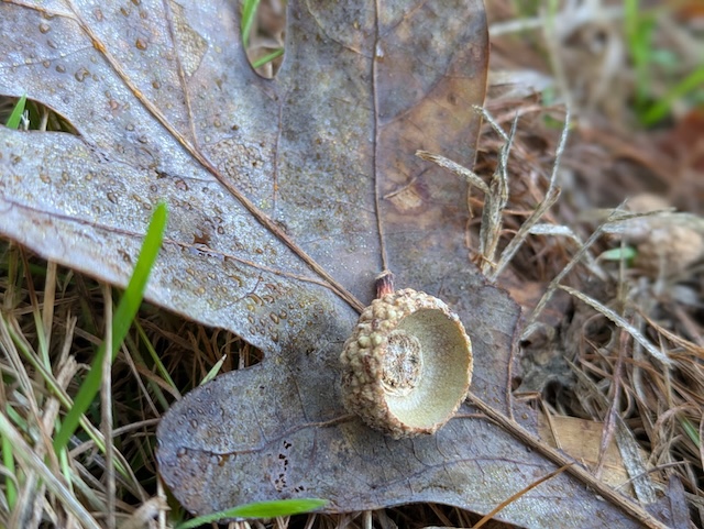 Oak leaves and acorns are part of the fall scenery.