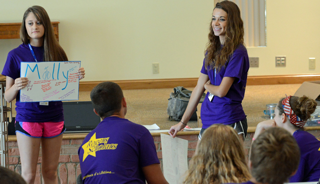 2013-07-16 - Hodge Center, 402 Helen Flatt Drive, Columbia, KY - Photo by Duane Bonifer. LWC photo. Rogers Scholars Kassidy Cyrus of Lawrence County, left, and Molly Matney of Metcalfe County make a presentation Monday, July 8, 2013 to fellow Rogers Scholars in the Norma and Glen Hodge Center for Discipleship. - Duane Bonifer, LWC