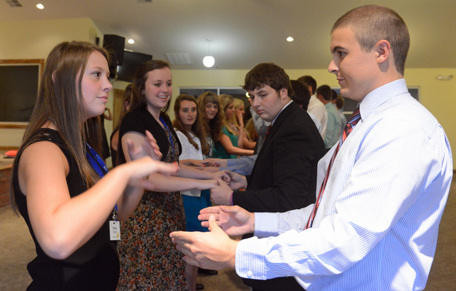 2013-07-16 - Roberta Cranmer Dining Center, 430 Helen Flatt Drive, Columbia, KY - Photo by Duane Bonifer. LWC photo. Rogers Scholars Rachyl Harmon of Clay County, left, and Emerson James of Jessamine County learn ballroom dancing Tuesday, July 9, in the Norma and Glen Hodge Center for Discipleship as fellow Rogers Scholars Karey Sellers of Casey County and Michael Maggard of Breathitt County look on. - Duane Bonifer, LWC