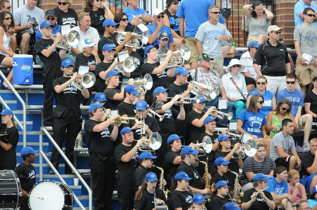 2012-09-02 - 820 Hanley Lane, Columbia, KY - Photo by Duane Bonifer. LWC photo. The Blue Raider Marching Band, under the direction of Mr. Tim Allen, performs during Saturday's Lindsey Wilson College-Union College (Barbourville, KY) game at Blue Raider Stadium. LWC won the home-opener, 36-21. - Duane Bonifer