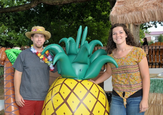 Trent and Sarah Creason, with Campbellsville University campus ministries, helped sign students up for games and offer directions at the BCM Luau August 28, 2012 on Stapp Lawn. Kick ball, ultimate Frisbee and bean bag toss were enjoyed by the large crowd. - Linda Waggener, CU