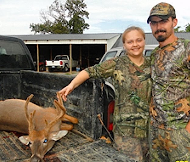 show off the buck is her husband, Tyler Eaton. - Sandy Janes