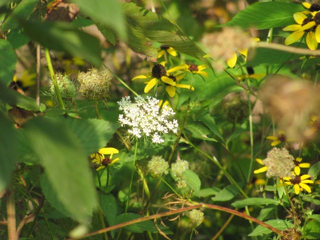2012-08-30 - Top of Dug Hill, off KY 704, Adair Co., KY - Photo by Linda Waggener. A beautiful sight in itself along Adair County byways this Queen Anne's lace located on Dug Hill over old Inroad, KY, on KY 704, Fairplay Road, has a bright and elegant court, a supporting cast of fall flowers, which seemed to demand a picture be taken. - Linda Waggener