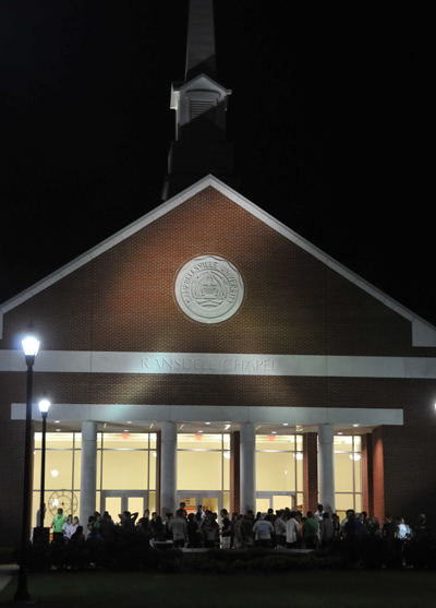 2012-08-28 - Ransdell Chapel, 401 N. Hoskins Avenue, Campbellsville, KY - Photo by Christina L. Kern. CU photo. Students enjoy the watermelon feast hosted by Baptist Campus Ministry in front of Ransdell Chapel. Saturday, August 25, 2012. - Christina L. Kern