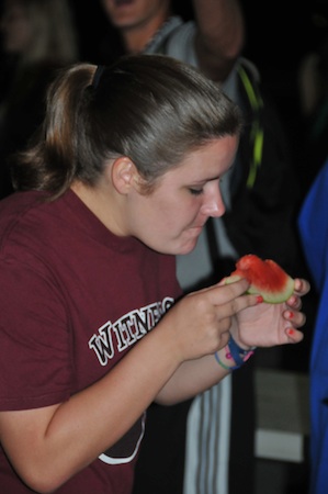 2012-08-28 - Campbellsville University, Campbellsville, KY - Photo by Christina L. Kern. CU photo. Kristin King of Tompkinsville, KY, takes a bite at the annual watermelon feast, hosted by Campbellsville University's Baptist Campus Ministry. - Christina L. Kern, CU