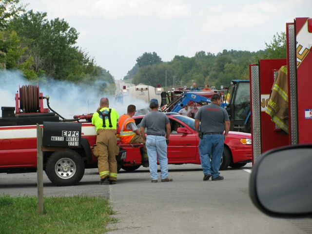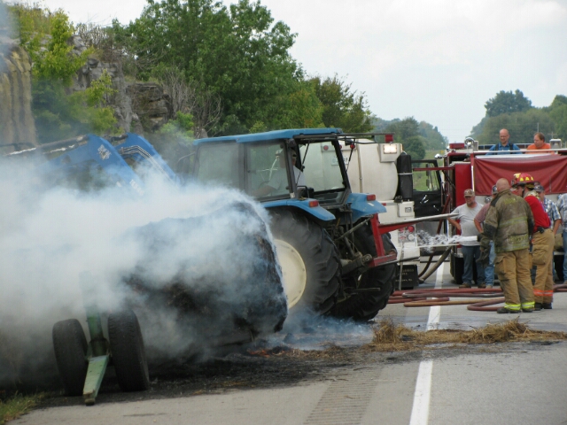 2012-08-28 - Adai County - Photo by Lawrence Hamilton. Everyone was held up early this afternoon on Hwy. 55 north of Columbia due to rolls of hay that caught fire.�They were still removing the smoldering hay at 1:30 cst. This took place in front of the Department of Environmental Protection building.