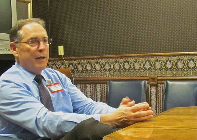 2012-08-28 - 901 Westlake Drive, Columbia, KY - Photo by Ed Waggener. Mr. David Rasmussen, New CEO at Westlake Regional Hospital in Columbia, KY, answered a question from the WAVE 92.7 FM's Mike Wilson at an informal meeting with Columbia media representatives, including Sharon Burton of the Adair County Community Voice, Paul Hayes of the Adair Progress, and Ed Waggener of ColumbiaMagazine.com. Mr. Rasmussen a native of Idaho, assumed the top post at the hospital Monday morning, August 27, 2012. He holds a Masters Degree in public health from The University of Arkansas/Little Rock and most recently was CEO of the Russell County Hospital in Russell Springs, KY. He will be giving a report tonight at the Adair County Hospital District Board of Trustees meeting at Westlake Regional Hospital, 901 Westlake Drive, Columbia, at the meeting which starts at 6:30pmCT, Tuesday, August 28, 2012.