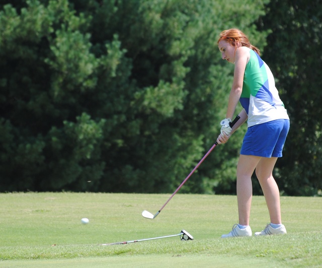 2012-08-26 - Lakewood Country Club, 4214 Kentucky 379 - Photo by Kimberly Goodin. Abby Royse, Adair County High Golf Team, chipping on No. 8 at Lakewood Country Club, Russell Springs, KY, in the August 25, 2012, Kentucky Invitational Tournament. Abby shot 101. - Coach Kimberly Goodin, Girls Golf Coach, Adair County High School
