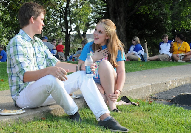 2012-08-19 - Lindsey Wilson Street, Columbia, KY - Photo by Duane Bonifer. LWC photo. Lindsey Wilson College freshmen Timothy Hoffman of Glasgow, KY, and Alex Russell of Greenville, KY, enjoy the president's picnic Saturday evening on the top of Lindsey Wilson Hill. - Duane Bonifer