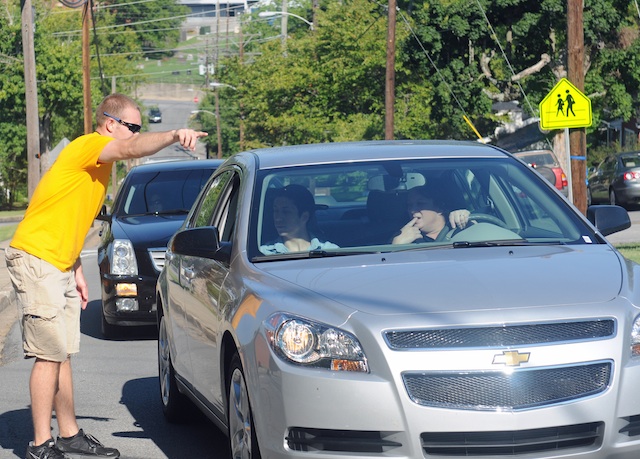 Move-in Day Aug. 18, 2012: J.R. Heiner directs traffic