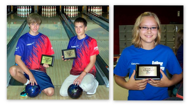 2012-08-17 - Corbin, KY - Photo by Betsy Fausnaugh. Bowling Champions - There are three 3, U.S.B.C. Bowling Champs in our county now. Kendra Kulac, right photo an 8th grader at Adair County Middle School, came in 4th in division 7 for girls at the Kentucky State Youth tournament held earlier this year in Corbin KY. Garrett Fausnaugh, left in left photo and Alex Kulac, right in left photo came in 3rd in the division 4 Doubles competition. Garrett also placed 10th in boys singles, division 3 and Alex was 13th in boys singles, division 2 , respectively. Garrett finished 15th overall in his division and Alex finished 10th overall in his division. I'm thinking it's time Adair county High school had a bowling team! The USBC actually has funds available for the schools to start such teams! What do you think? Betsy Fausnaugh